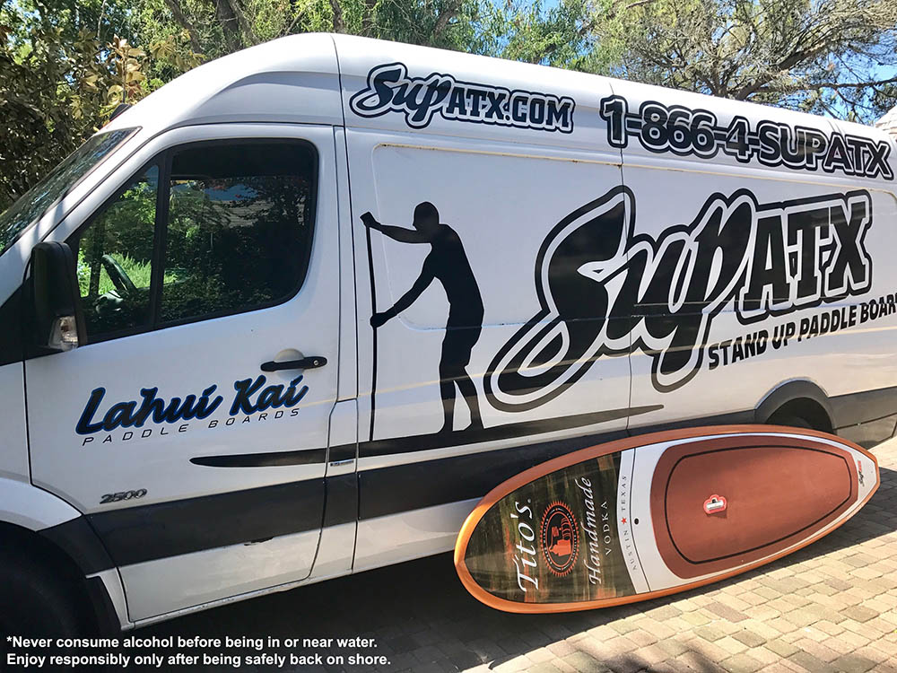 SUP ATX Sprinter van available at residences or public access locations around Austin for private parties. Each SUP ATX van includes: