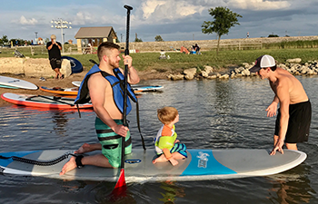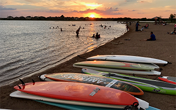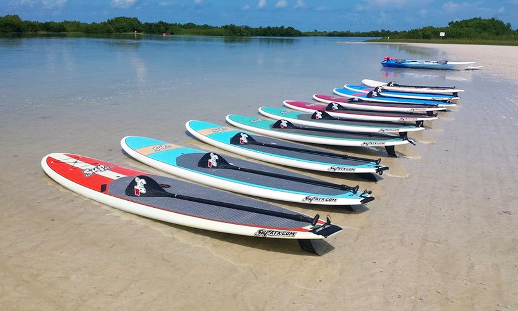 - 12 SUP ATX paddle boards and adjustable length paddles with life jackets and leashes included